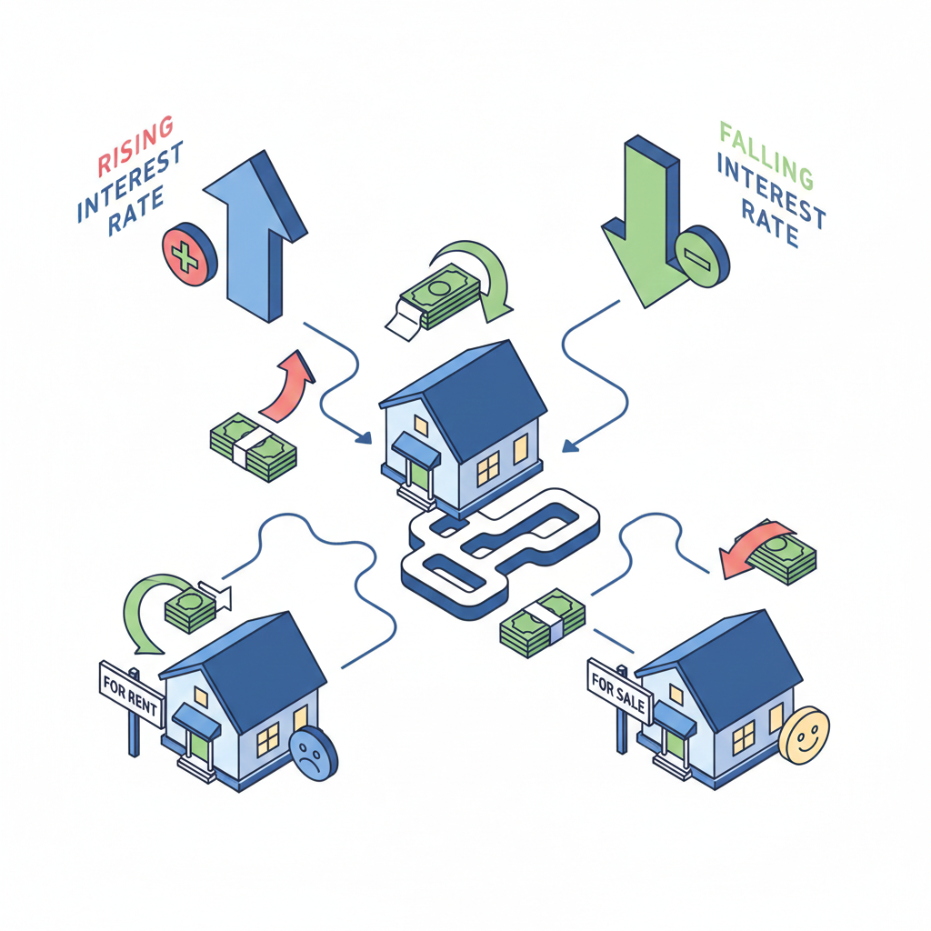 금리가 오르면 매매는 부담이 커져 느려지고, 전세는 수요 이동과 월세화가 겹치면서 지역별로 강약이 갈리기 쉬워요.