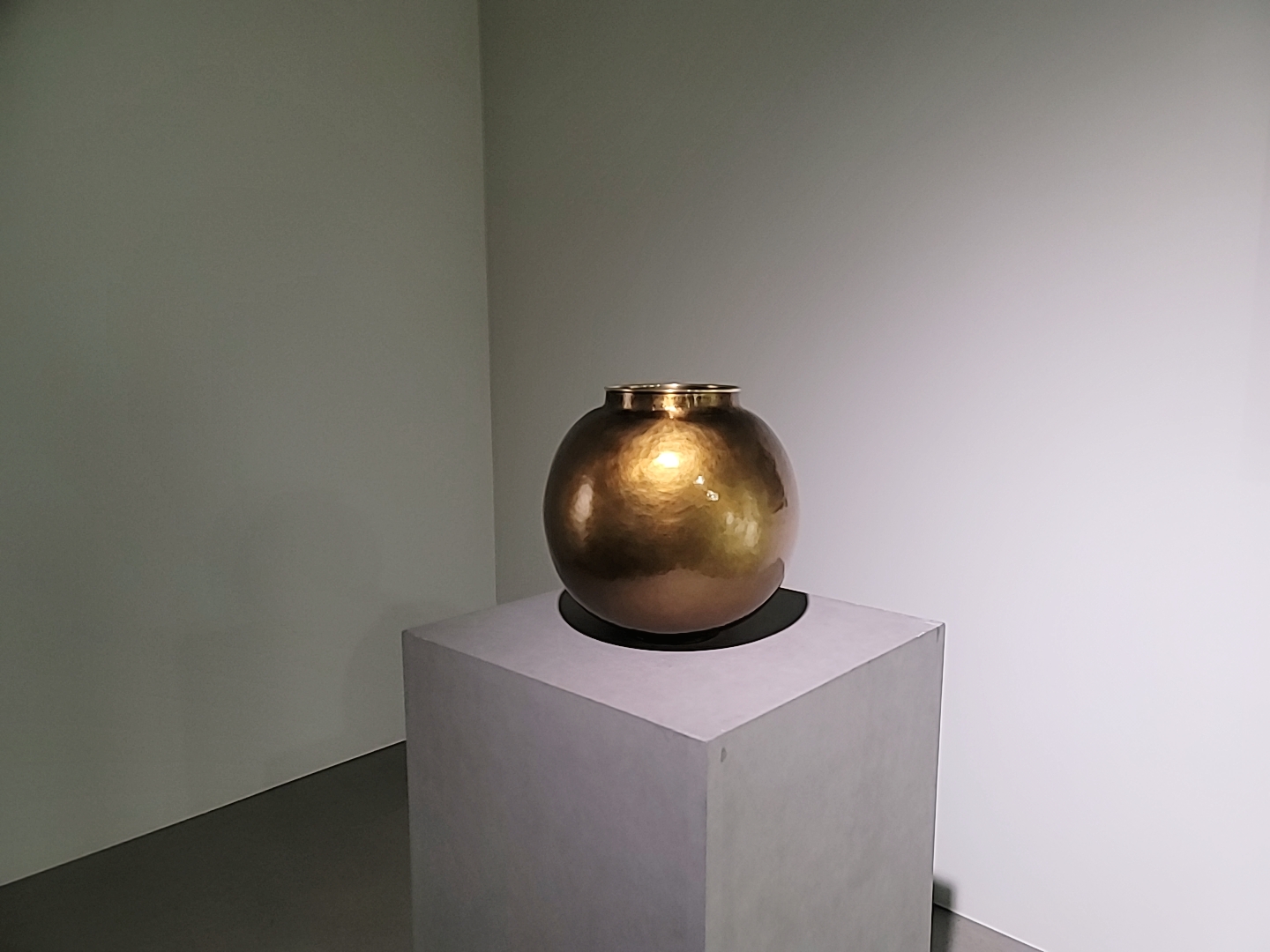 그림처럼 금속판에는 감각적이고 즉흥적인 망치 자국이 가득하다.